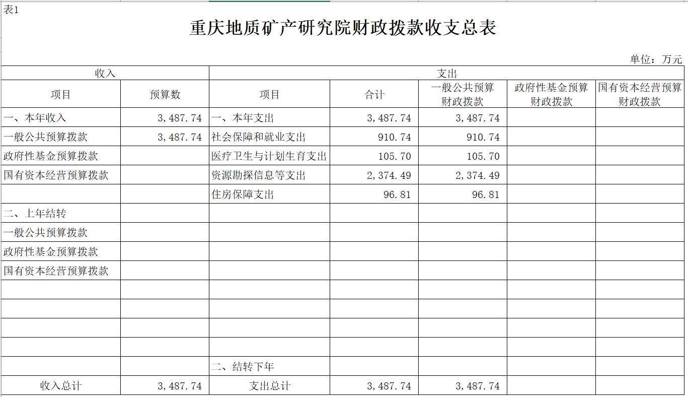 附表:1、財政撥款收支總表