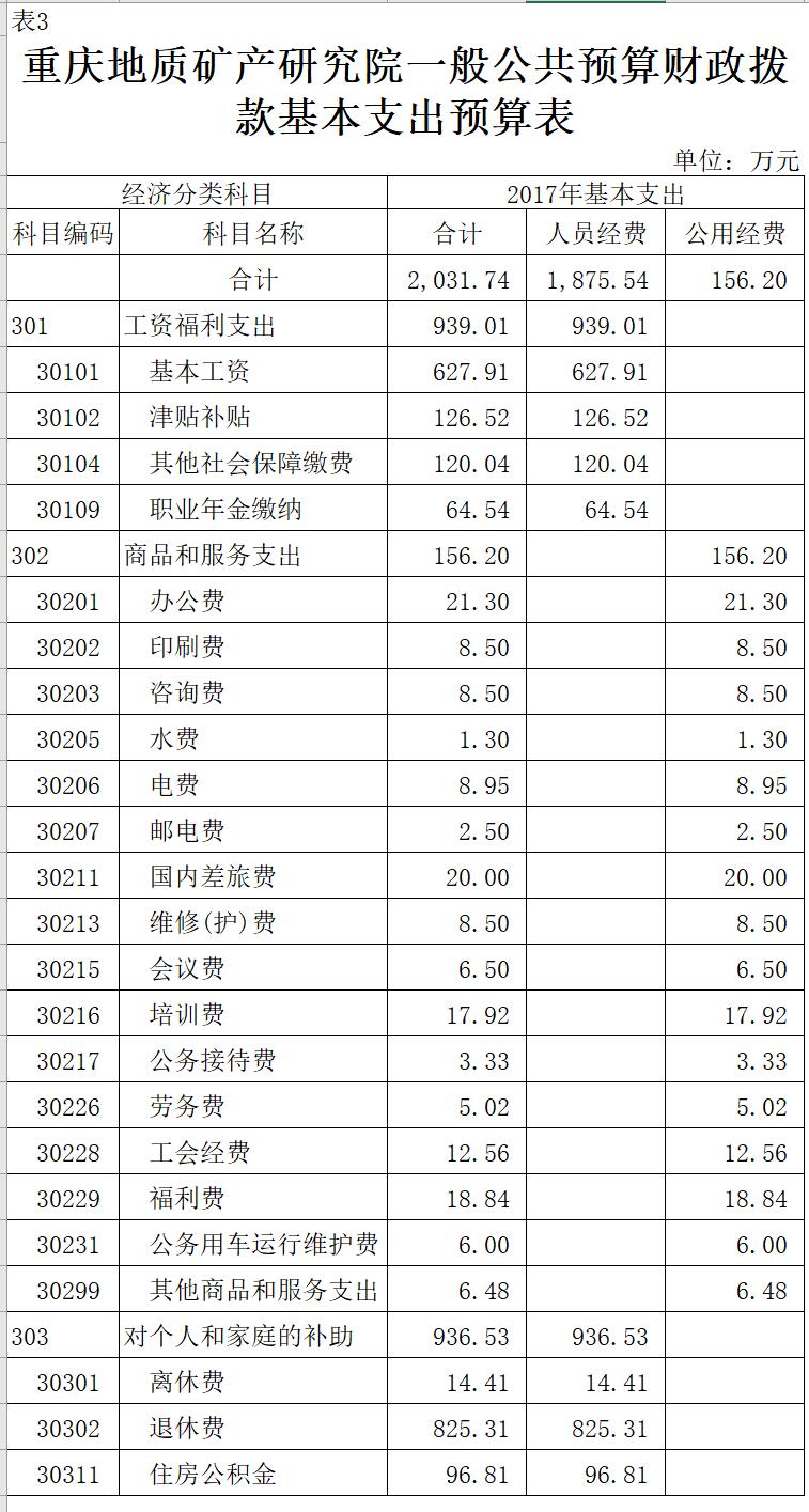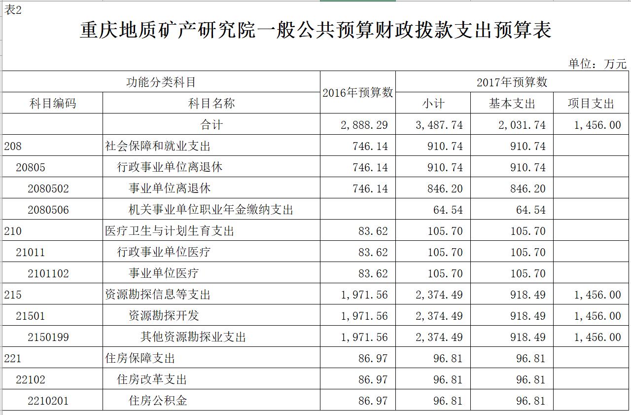 重慶地質(zhì)礦產(chǎn)研究院2017年部門預(yù)算情況說明